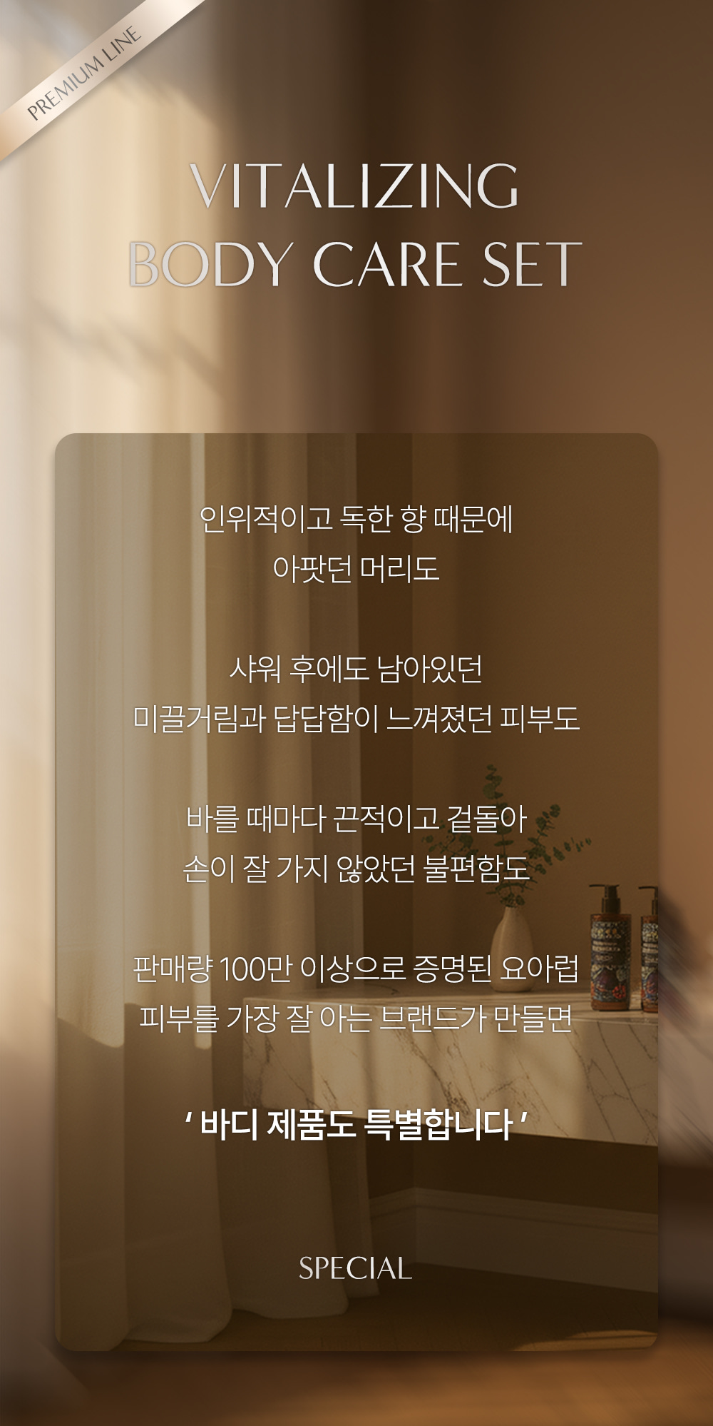 압도적인 피부 바이탈라이징 효과,100만 병 팔인 극락 바디케어 세트시트